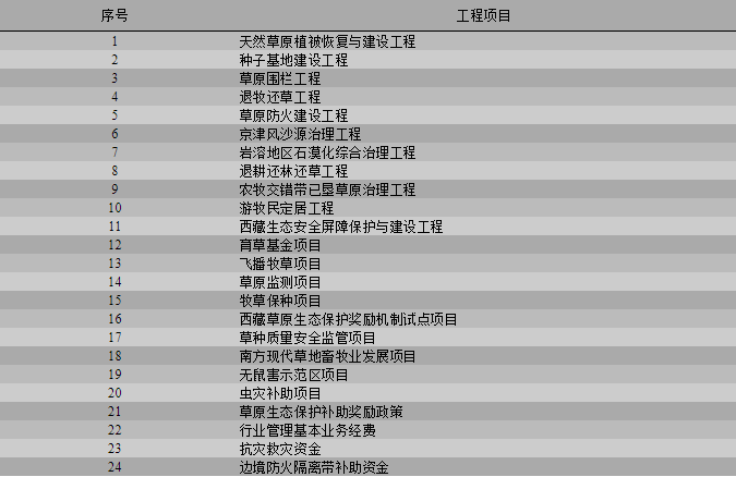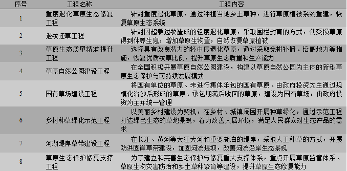 表1 草原生态保护修复工程项目