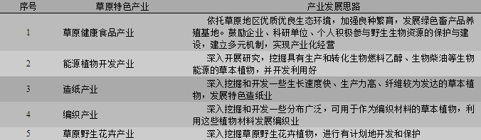 开发草原健康食品、能源植物、编织等具有草原特色的产品,逐步形成草原地区特色产业(表7)。