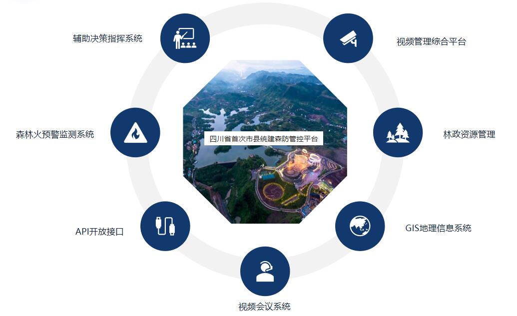 达州项目为川内第一个市级统建项目,项目建设共计30个点位,6座新建铁塔、6座新建抱杆、2个瞭望塔改造,本套系统集森林防火预警系统、视频管理综合平台、GIS地理信息系统、辅助决策指挥系统、林政资源管理等一体的智慧林业综合性管理平台,同时将视频会议系统也并入该平台,实现森林防火系统和省级会议系统的自由切换。该套系统还预留应急通信、环境检测、地质灾害评估等接口,以便后续相关的系统软件接入。